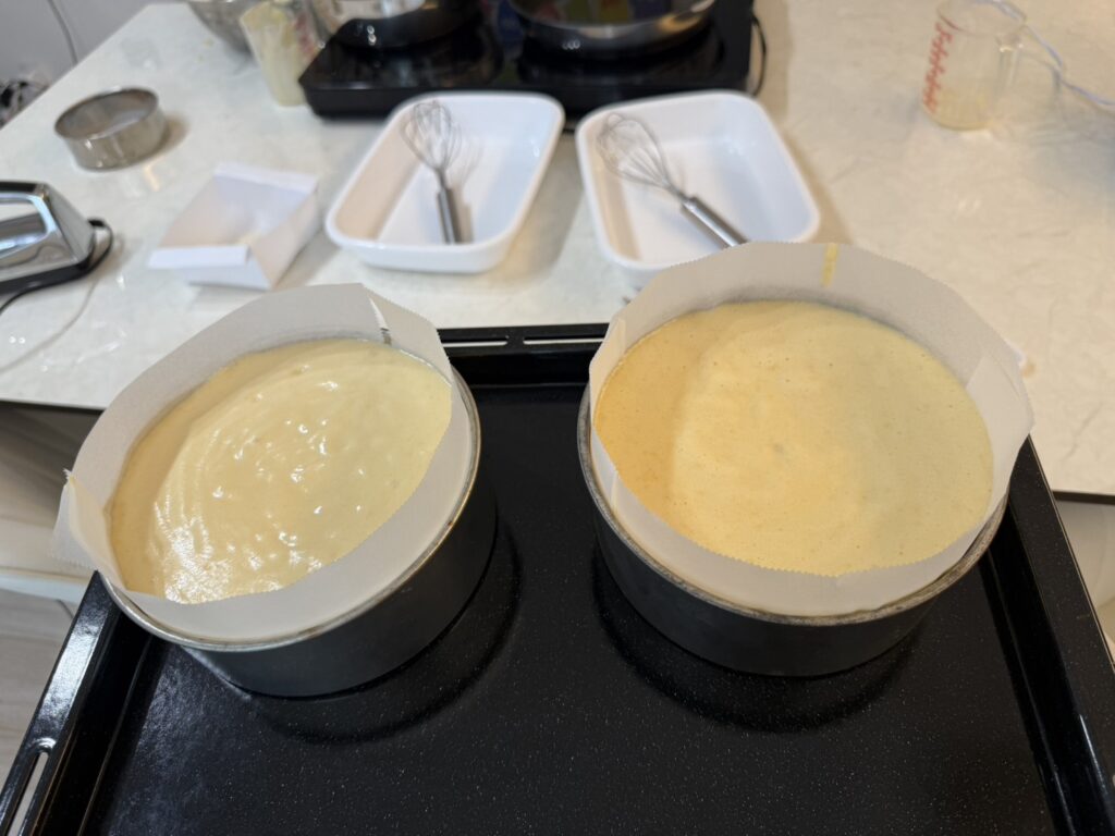 計量からスポンジにクリームを塗る、