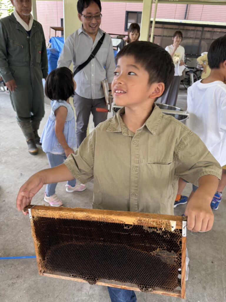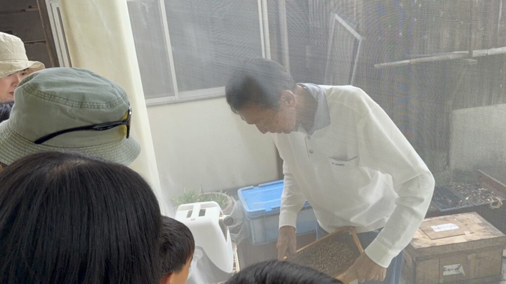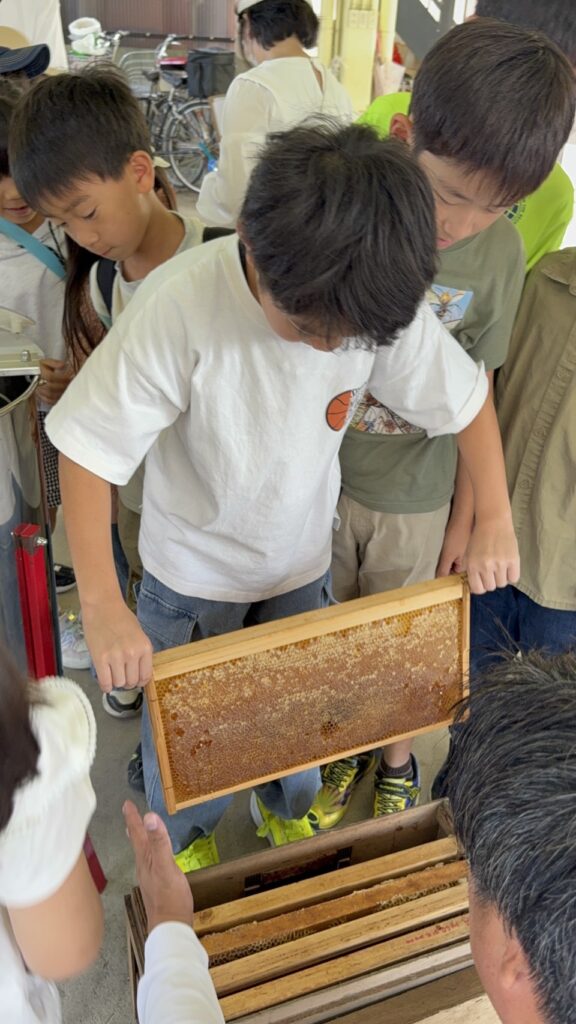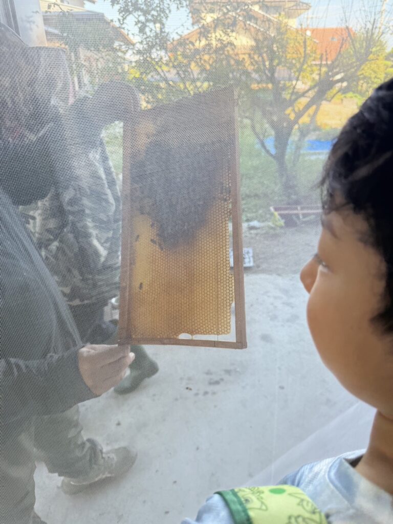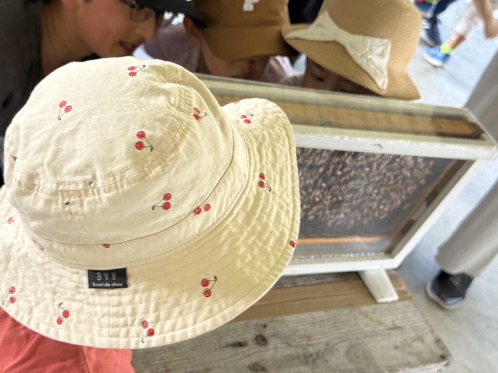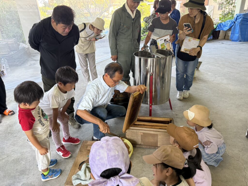 実際にミツバチを近くで見たり、手動の遠心分離機で採蜜したりするうちに