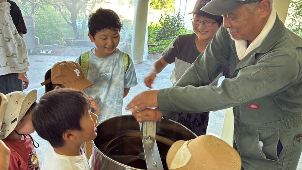 撹拌機を回す前と後で、はちみつの重さが変わることに子どもたちはびっくり😳💛